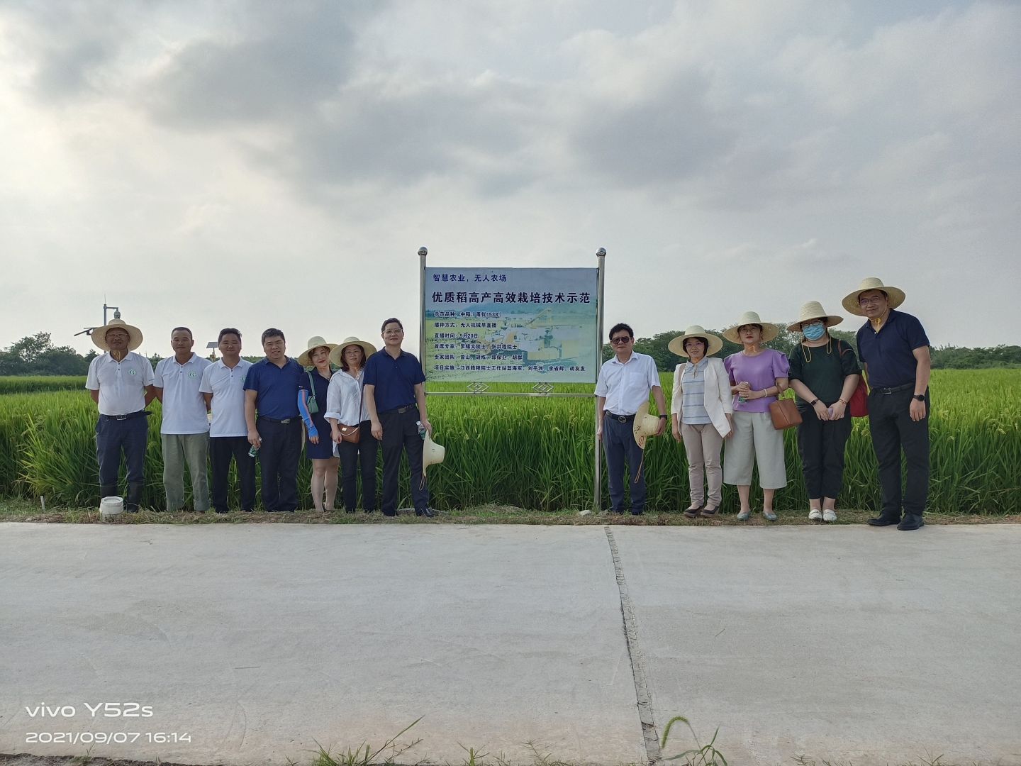 江西贛糧公司院士工作站陳大洲主任陪同,藍(lán)海軍副主任向調(diào)研小組詳細(xì)匯報(bào)了工作站岡上基地水稻智慧農(nóng)業(yè)和無人農(nóng)場項(xiàng)目實(shí)施情況。隨后,基地負(fù)責(zé)人劉平洲場長向調(diào)研小組介紹了基地水稻試驗(yàn)示范情況和再生稻生產(chǎn)情況。調(diào)研小組認(rèn)真聽取了匯報(bào),對贛糧公司智慧農(nóng)業(yè)項(xiàng)目工作開展情況表示肯定,觀看到無人農(nóng)場的一片稻田生長很好!稻穗成墊墊的,正在成熟的稻谷金黃色可好看的,表示將繼續(xù)關(guān)注無人農(nóng)場后期生產(chǎn)情況,收獲時再來觀摩現(xiàn)場。