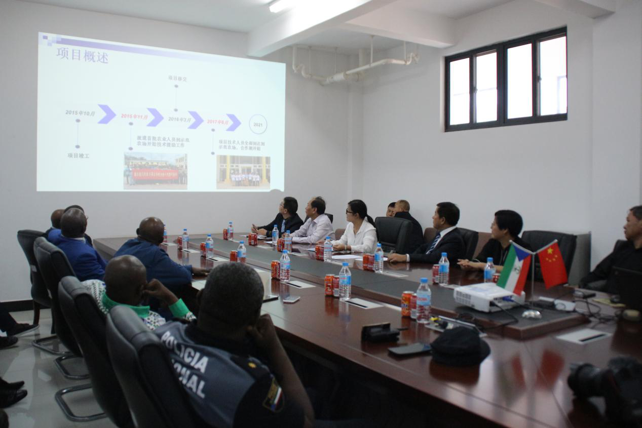 2017年8月18日,江西省政府副秘書(shū)長(zhǎng)宋雷鳴率領(lǐng)江西省農(nóng)業(yè)廳相關(guān)領(lǐng)導(dǎo)及優(yōu)秀農(nóng)業(yè)企業(yè)代表,蒞臨中國(guó)援赤道幾內(nèi)亞示范農(nóng)場(chǎng)考察指導(dǎo),援赤幾農(nóng)業(yè)組、涅方市政府和當(dāng)?shù)厝罕姛崆榻哟疾靾F(tuán)。